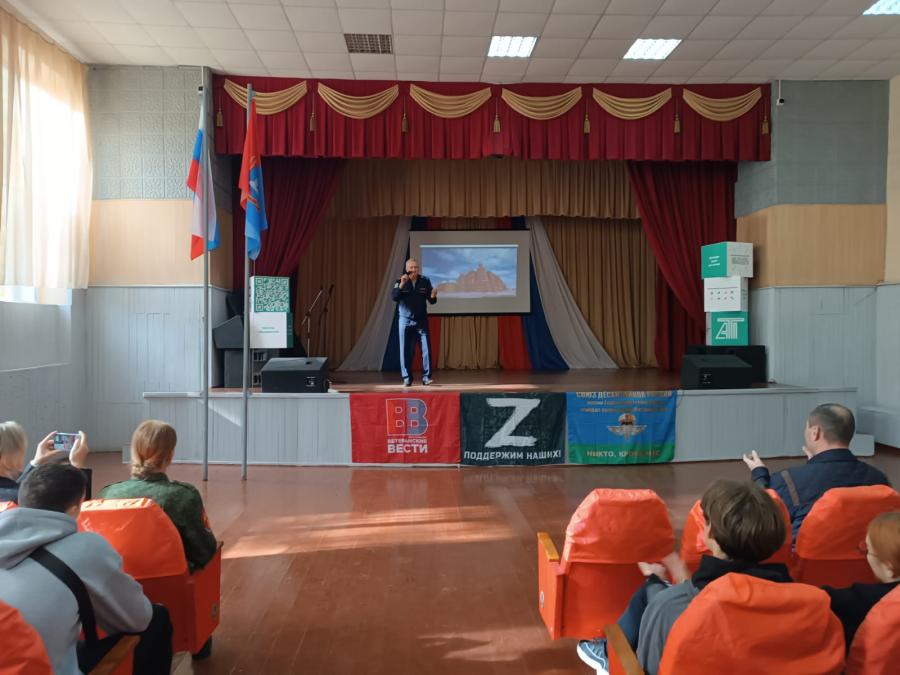 9 октября в ТОГБ ПОУ "Аграрно-технологическом техникуме" прошла программа Союза десантников России " ZA Победу" в поддержку СВО. На мероприятии присутствовало 120 слушателей. Получили тёплый приём аудитории и благодарность администрации.
